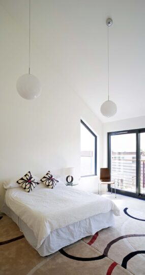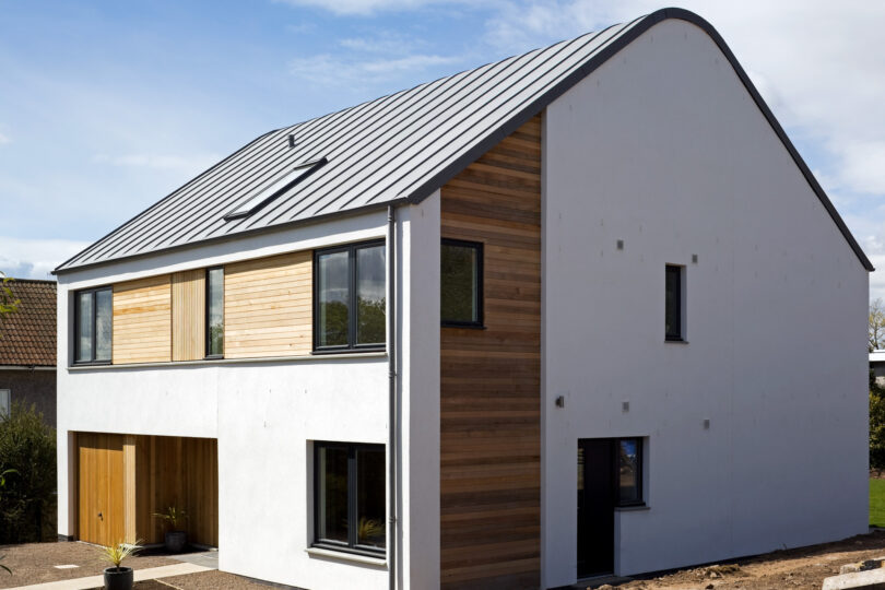 Sitting in ample garden ground the houses have a clean palate of materials with smooth white render being the dominant material, complemented by small areas of western red cedar cladding and a zinc standing seam roof.